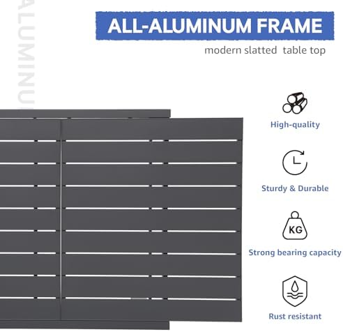 • 【DURABLE FRAME & FUNCTIONAL DETAIL】: Durably made of solid aluminum with a rust- and weather-resistant finish, helping ensure a sturdy rectangular table that lasts for years to come. Also, there are adjustable leveling feet to stay balanced and protect the outside table during movement.