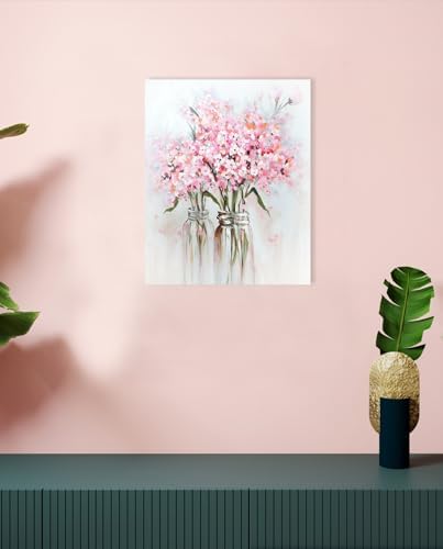 YPY Pink Flowers Canvas Wall Art: Abstract Bouquet in Vase Artwork Prints for Teen Girl Bedroom Pink Floral Picture Poster Bathroom Decor 12" x 15"