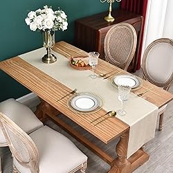 NEWISHER Farmhouse Rustic Table Runner Solid Beige Rectangular Table Runners Faux Linen Table Runner for Everyday Use Kitchen Dining Party Table 13x60 Inch
