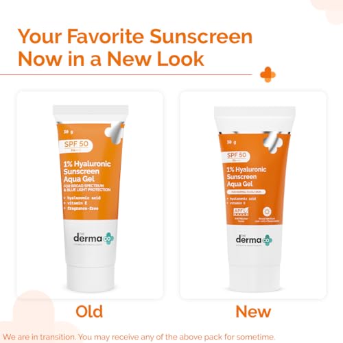 The Derma Co 1% Hyaluronic Sunscreen Aqua Gel with SPF 50 & PA++++ | Provides Blue Light Protection | Suits Oily to Normal Skin | Men & Women | 1.06 Oz/30g