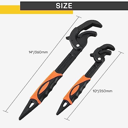 2PCS Pipe Wrench, Adjustable Wrench Multi-function Spanner, Heavy Duty Quick Wrench Water Pipe Compatible with 0.6"-2.4" / 14-60MM Pipes Nuts Screws