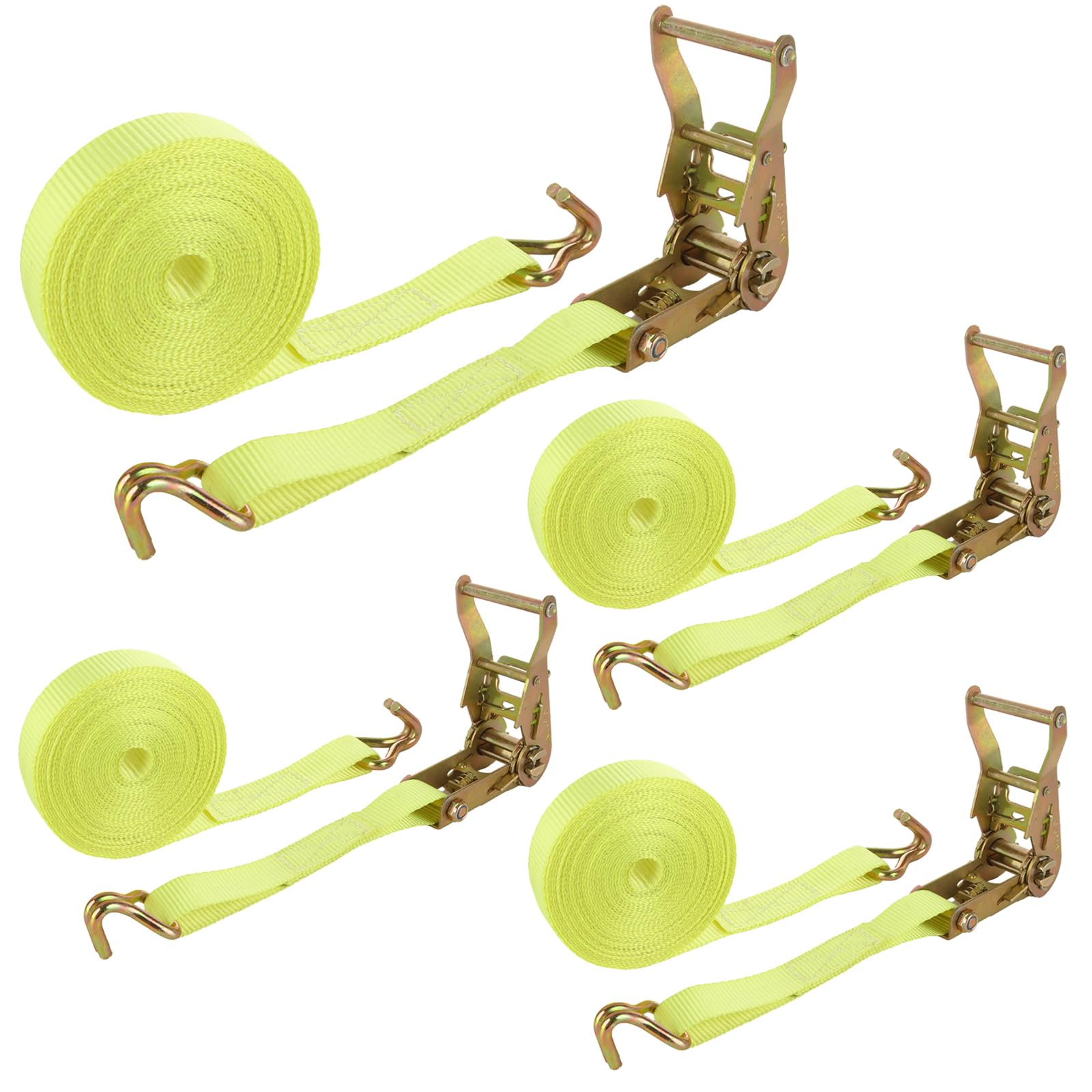 4 Pack 2 Inch Ratchet Straps Heavy Duty 20ft Tie Down Straps Ratchet with Double J Hook, 10000 LBS Break Strength, Cargo Ratchet Straps for Moving, Truck, Trailers, Motorcycles, Kayaks, Car Roof