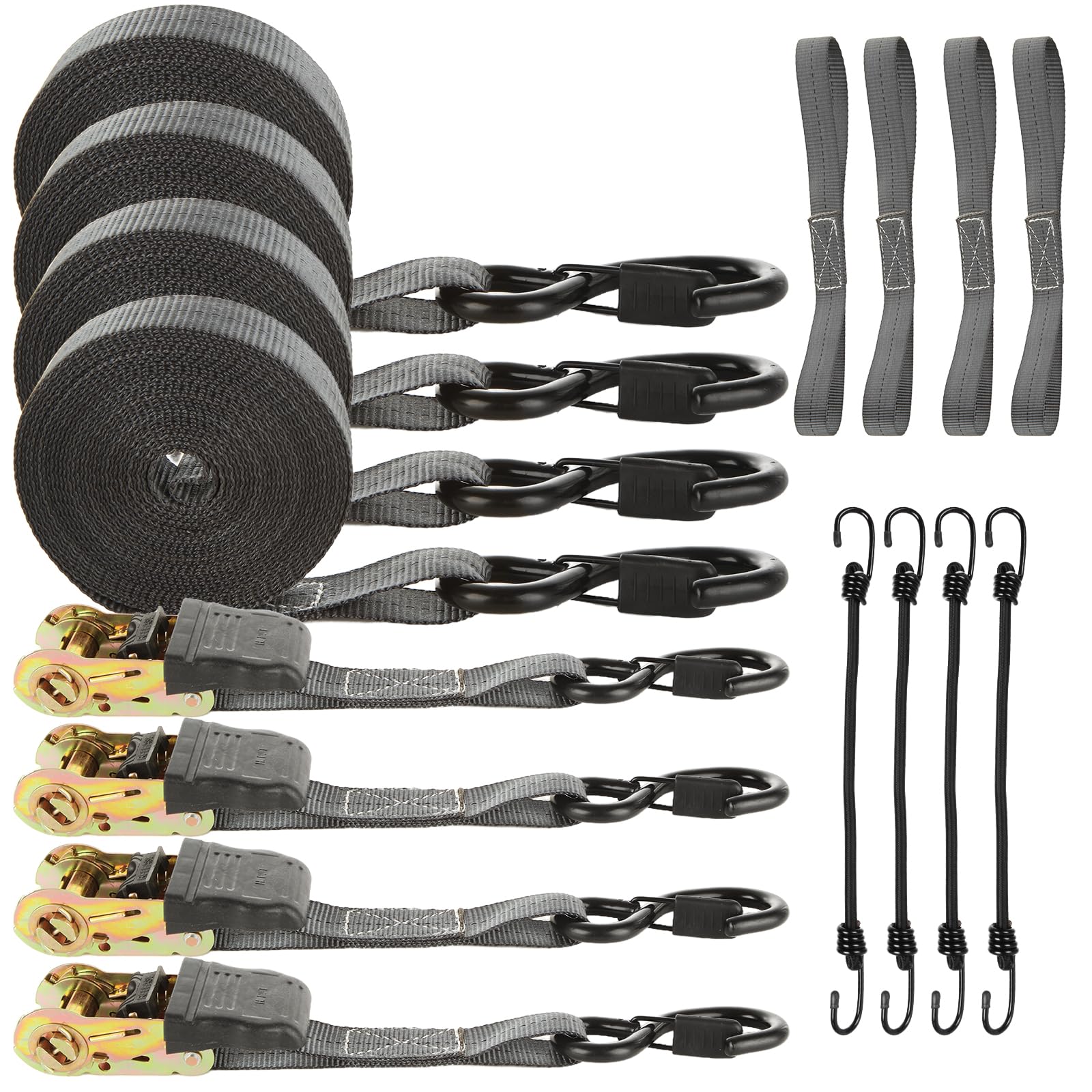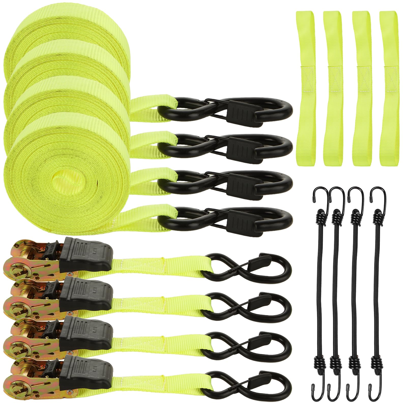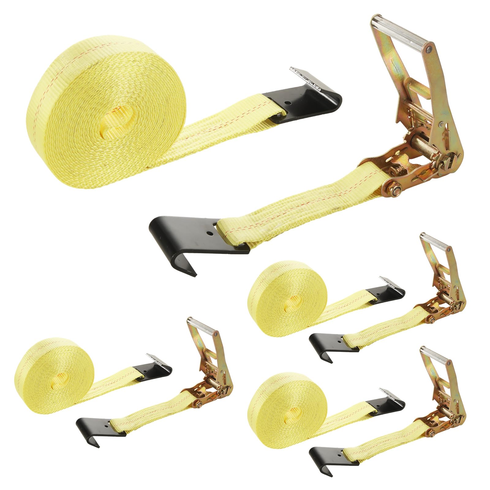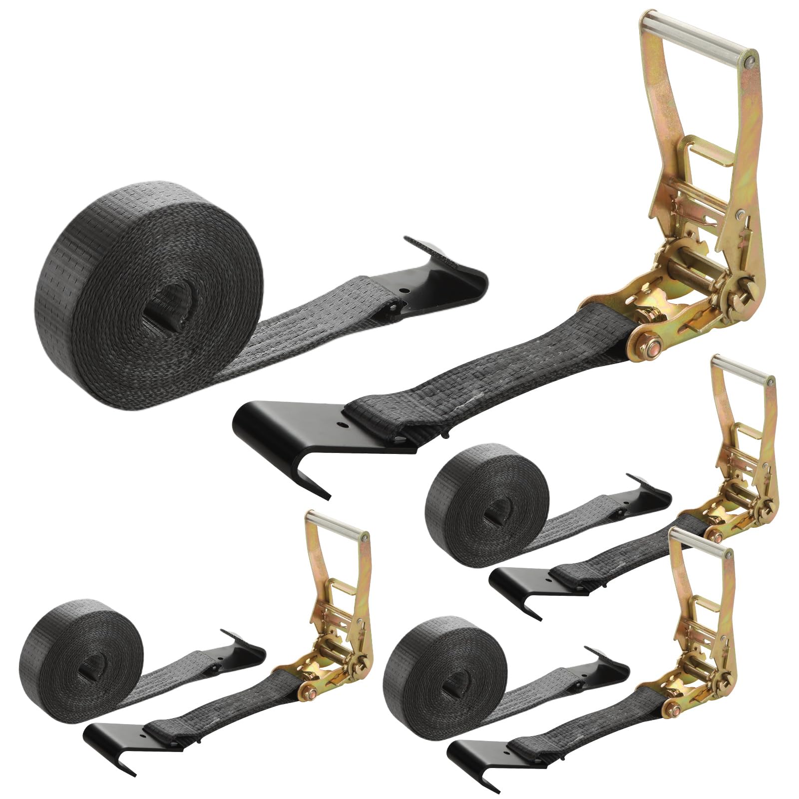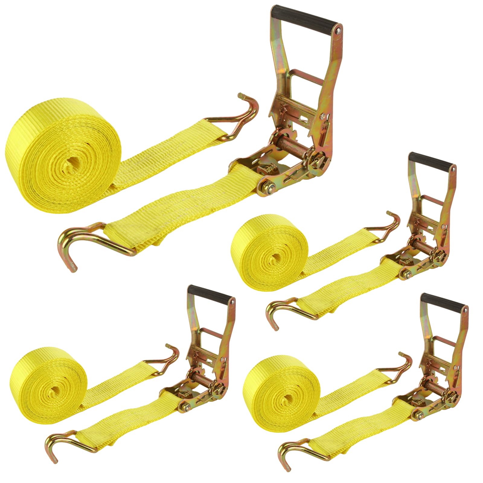 - 【Durable and Sturdy】Ratchet tie down straps heavy duty is made of metal steel and high density weaving of high quality polyester webbing fiber, features wear-resistance, corrosion-resistance, won't curl and superior breaking resistance. Super soft, does not hurt the goods. Release mechanism adpot steel heat treatment, has high hardness, not easy to rust and bend.
