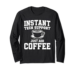 Instant tech support, just add coffee. Technical support job description is to provide assistance and computer troubleshooting. Perfect for sysadmin, computer nerds, IT support, tech helpdesk, linux fan and remote tech support who drink caffeine. Unique for system administrator, helpdesk worker, tech expert, women, men, dad, mom, sister or brother to celebrate National I.T. Professionals Day. Lightweight, Classic fit, Double-needle sleeve and bottom hem