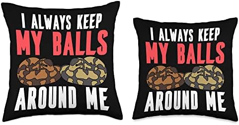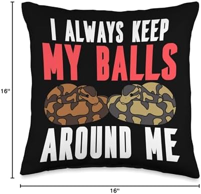 Funny Ball Python Snake Gift Python Snake I Always Keep My Balls Around Me Throw Pillow, 16x16, Multicolor
