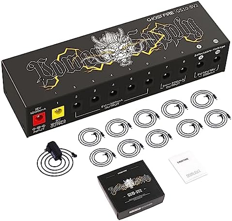 GHOSTFIRE GS10-SV2 10-Output Guitar Pedal Power Supply 9V/1000mA High Current for 9V/12V/18V Effect Pedals (GS10-SV2)