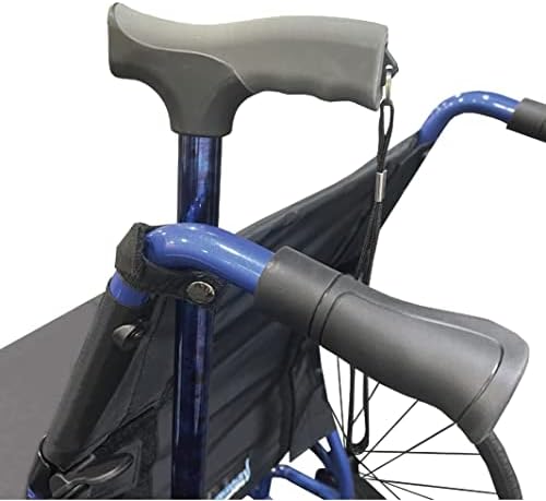 - Securely hold your cane in place with the included hook and loop strap