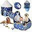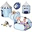 LimitlessFunN 4pc Space Rocket Ship Kids Pop Up Play Tent, Crawl Tunnel, Ball Pit | Includes Star Lights & Carrying Case |, Children Indoor Castle Playhouse for Boys, Toddlers, 47" D x 126" W x 53" H