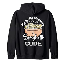 - Computer Programming Spaghetti Code Programmer Italian Food. This My Guilty Pleasure Is A Spaghetti Code is for a computer programmer who knows the spaghetti code. Great for a softwate developer who loves eating spaghetti and italian foods. Are you a spaghetti eater into debugging and coding? Are you a web developer or an information technology graduate who is a spaghetti lover? If yes, grab this. Awesome for a coder searching for I love pasta design.