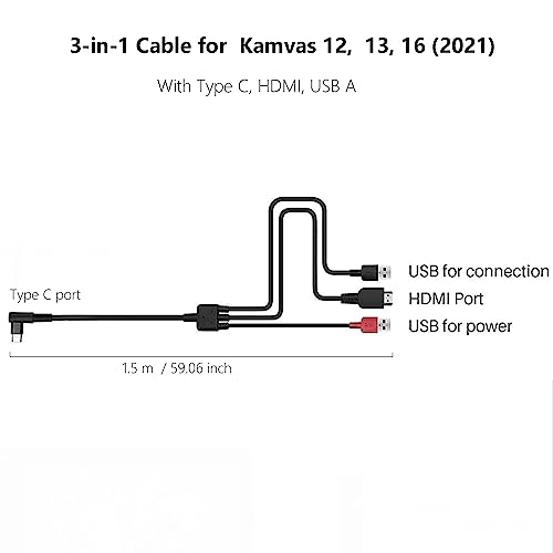 - Compatibility: This 3 in 1 cable compatible with Graphic Tablet Kamvas 12 Kamvas 13 and Kamvas 16 2021. The integration of data, power, and USB cables, brings you a creative space with concise desktop
