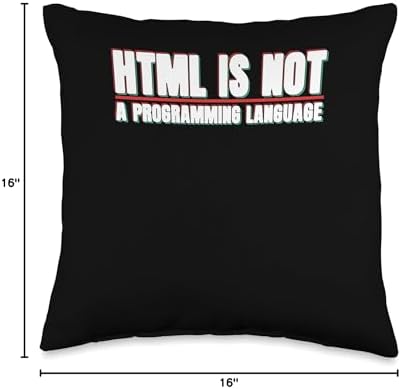 HTML Is Not Programming Language Coder Gift Funny HTML is Not Programming Language | Coder Programmer Throw Pillow, 16x16, Multicolor