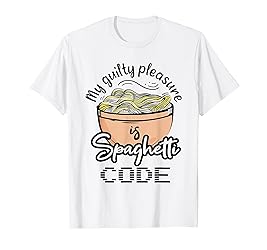 - Computer Programming Spaghetti Code Programmer Italian Food. This My Guilty Pleasure Is A Spaghetti Code is for a computer programmer who knows the spaghetti code. Great for a softwate developer who loves eating spaghetti and italian foods. Are you a spaghetti eater into debugging and coding? Are you a web developer or an information technology graduate who is a spaghetti lover? If yes, grab this. Awesome for a coder searching for I love pasta design.
