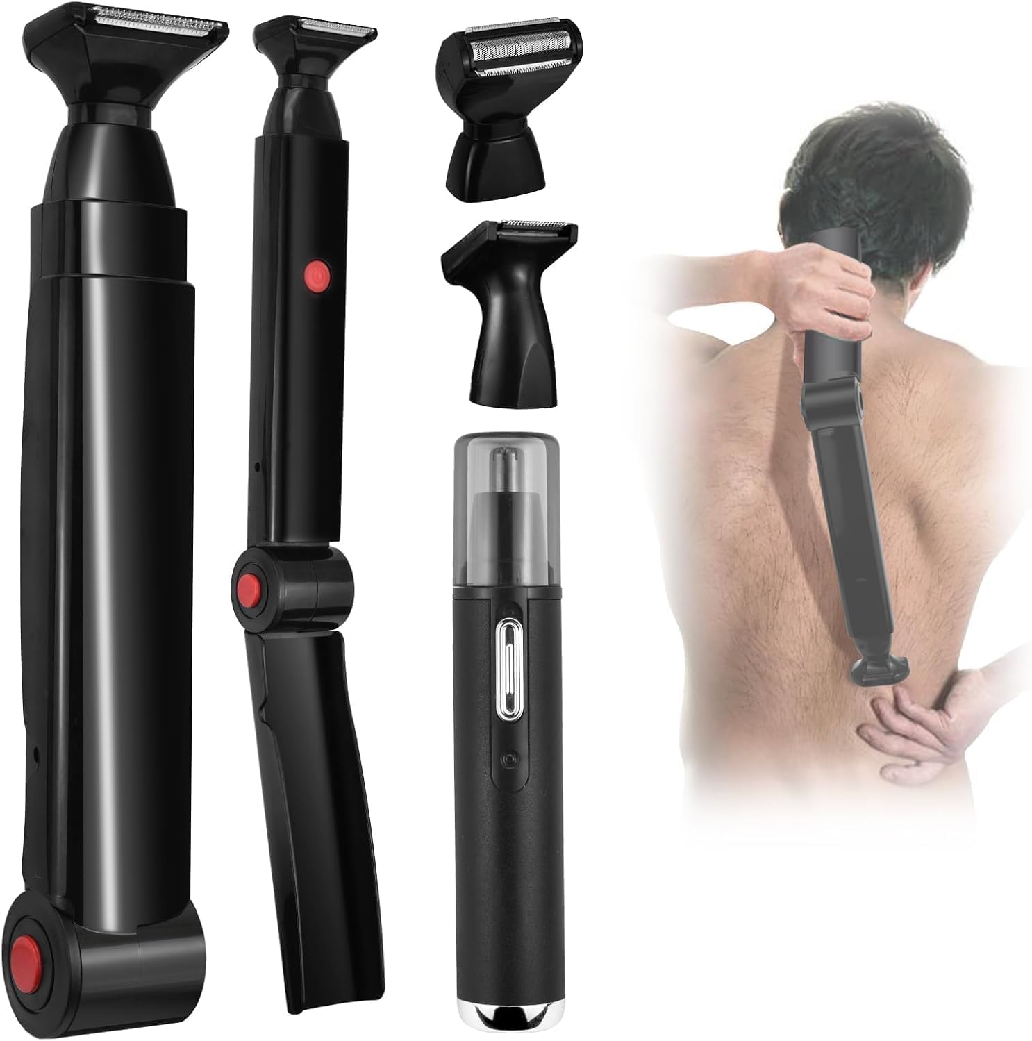 - DUAL-USE HANDLE FOR BACK & CHEST GROOMING: Switch easily between extended and compact modes to reach your back, chest, abs, or arms. One tool for full-body manscaping.