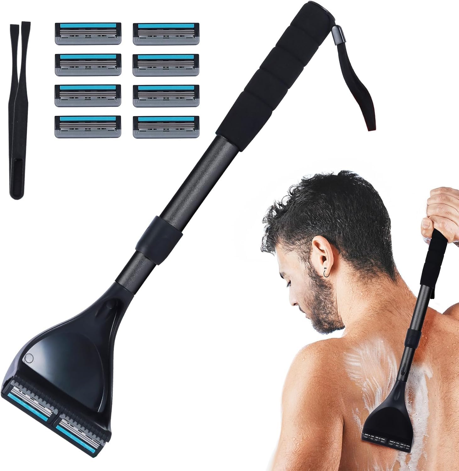 - SHAVE YOUR OWN BACK - NO HELP REQUIRED: Ergonomic folding handle extends to 17 inches, letting you shave your back, shoulders, and more without awkward angles—or asking anyone for help.