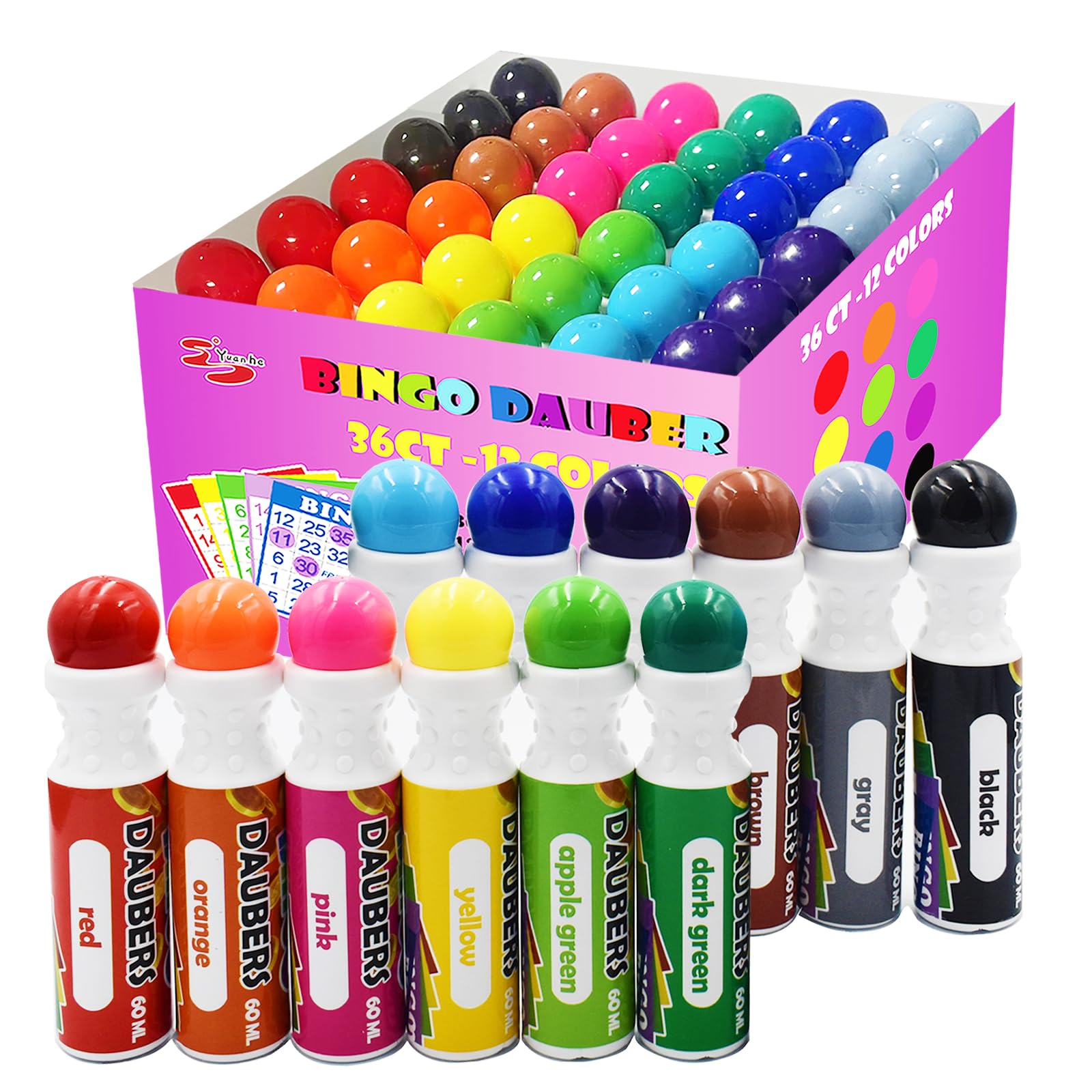 Yuanhe Bingo Daubers Dot Markers - 3 oz Paint Dotter Bingo Dabbers/Dobbers, Set of 12
