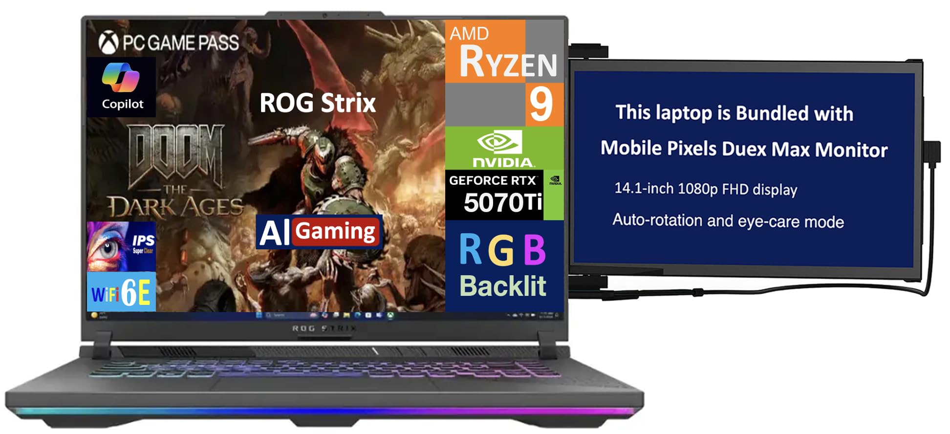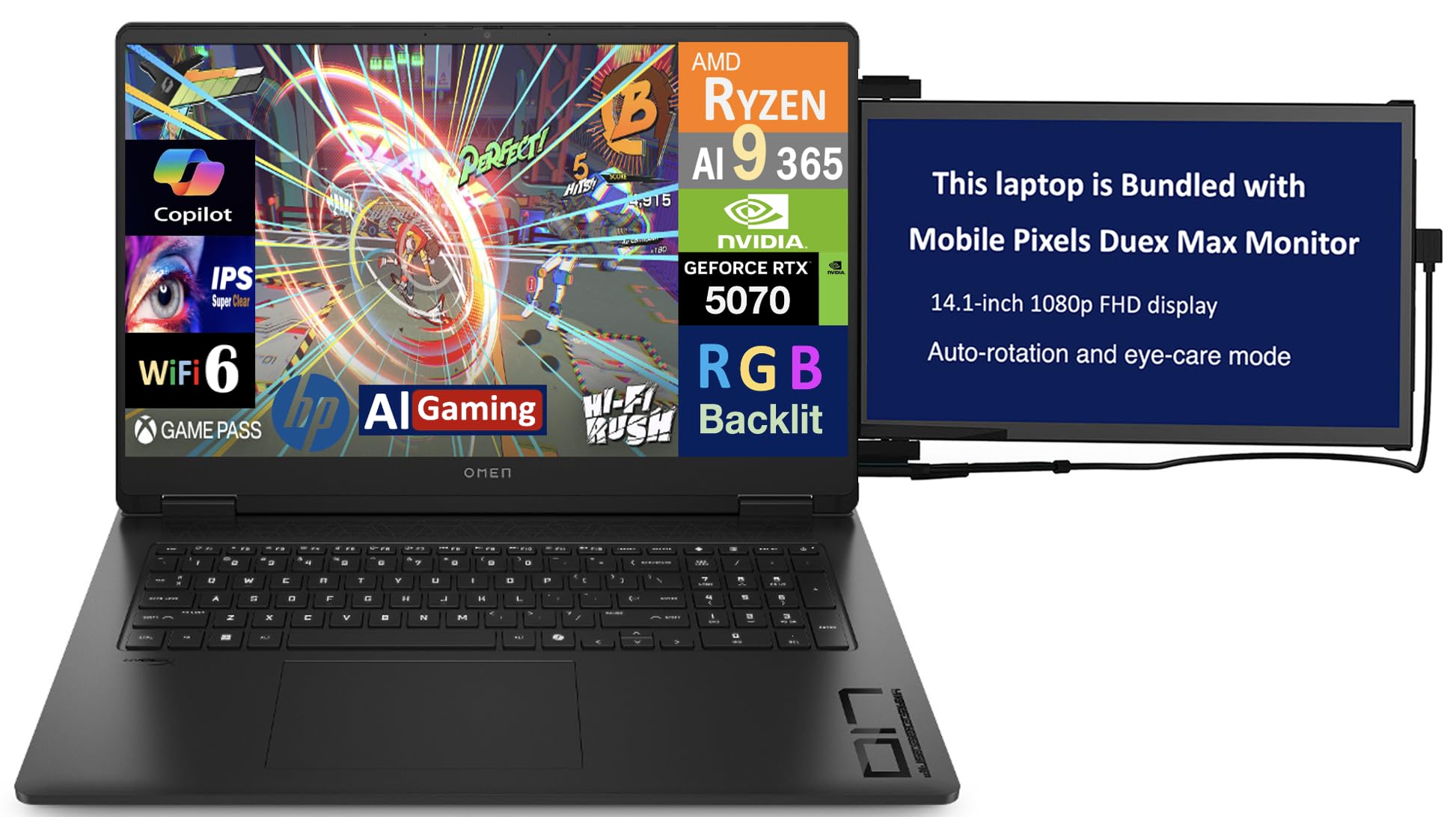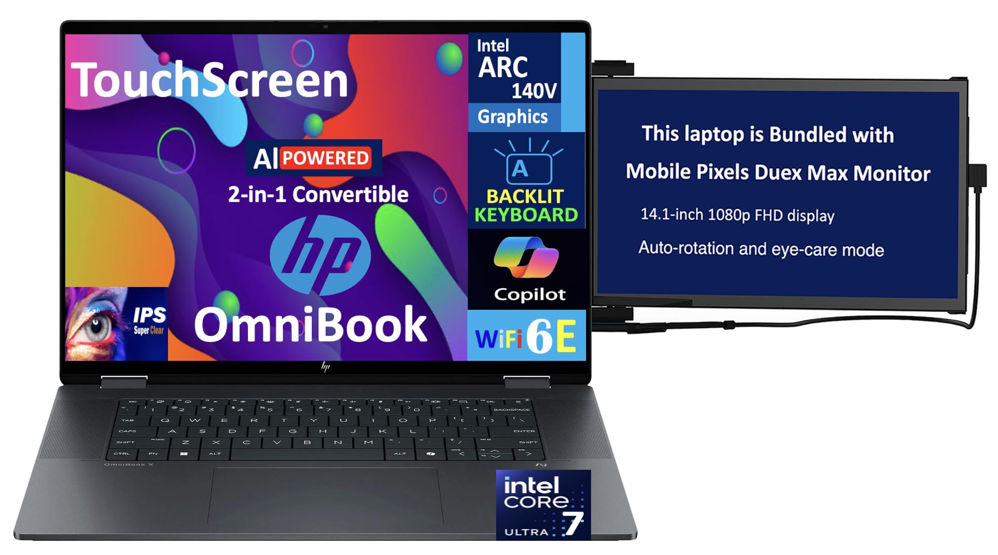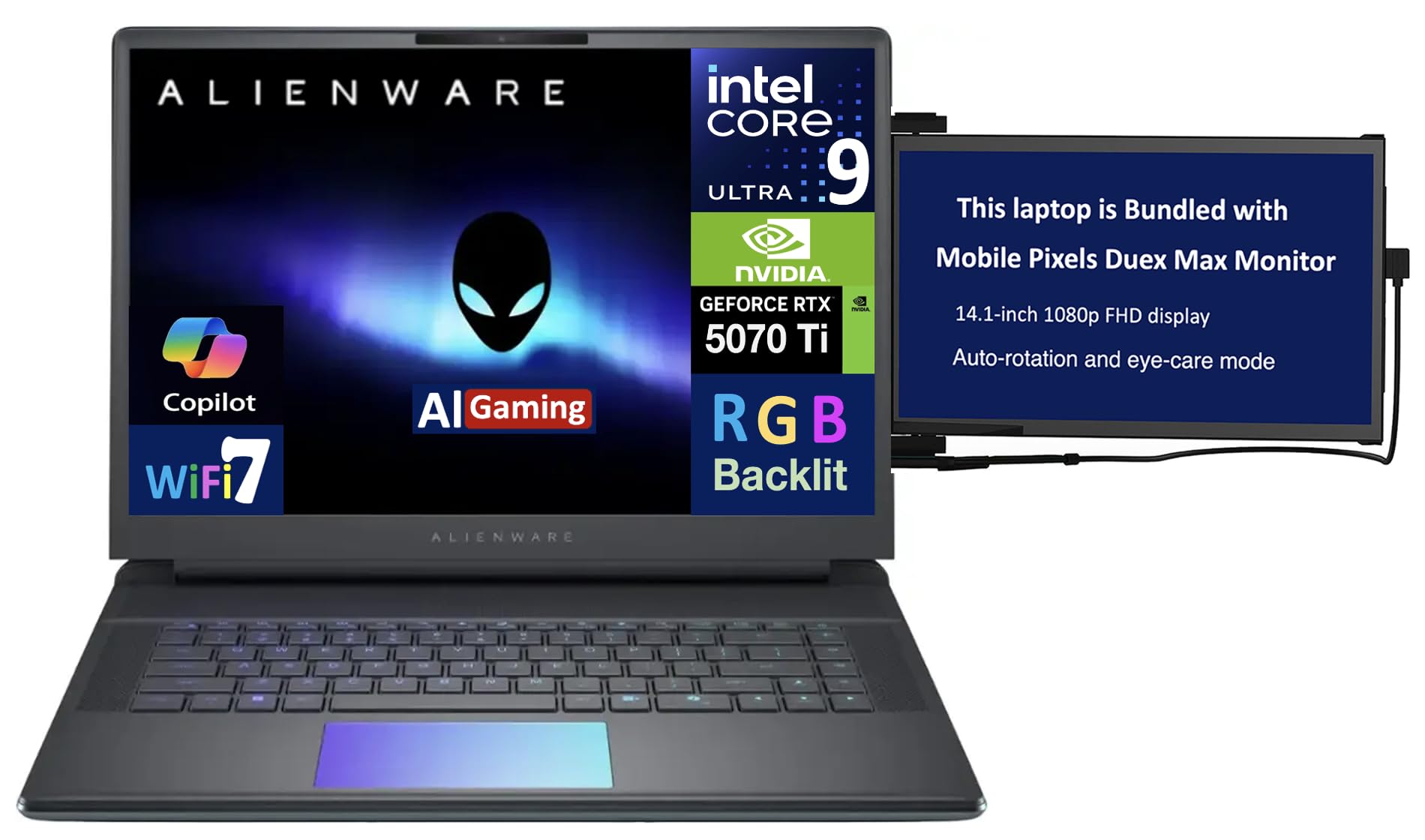 2025 Mobile Pixels Duex Max DS 14.1'' FHD Portable Monitor, USB C/HDMI Plug and Play 1080p Laptop Monitor Extender, Portable Screen for 14''-17 '' Laptops, Compatible with Mac/Windows/Android/Switch