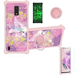 BLU View 4 Case Compatible with BLU View4 Phone Case BLu View 2 2023 B135DL Case Cover [with Tempered Glass Screen Protector][Hard PC + Soft Silicone][Ring Support] [Gold Glitter+Luminous] JSF-DJS
