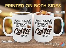 Programmer Coffee Mug 15oz White -full-stack developer needs coffee badly - Computer Science Tech Web Developer IT Database Programming Deging Coding Software