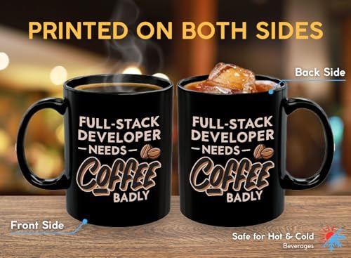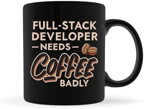 Programmer Coffee Mug 11oz Black -full-stack developer needs coffee badly - Computer Science Tech Web Developer IT Database Programming Deging Coding Software