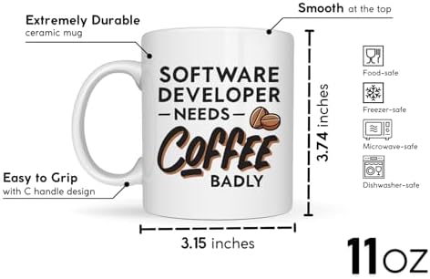 Programmer Coffee Mug 11oz White -software developer needs coffee badly - Computer Science Tech Web Developer IT Database Programming Deging Coding Software