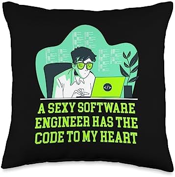 Trending Computer Programming Professional Sexy Software Engineer Has Code to My Heart Memes Throw Pillow, 16x16, Multicolor