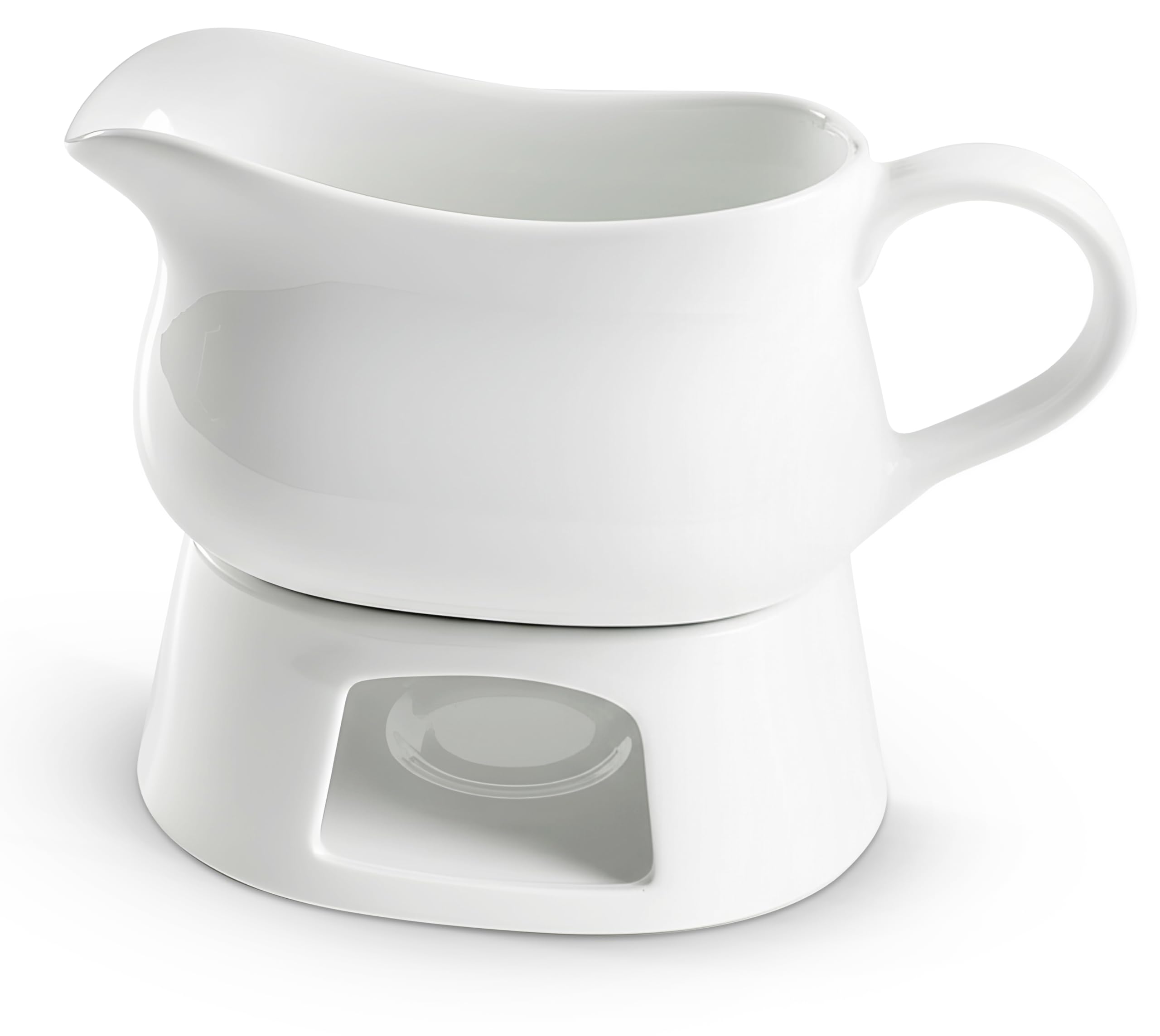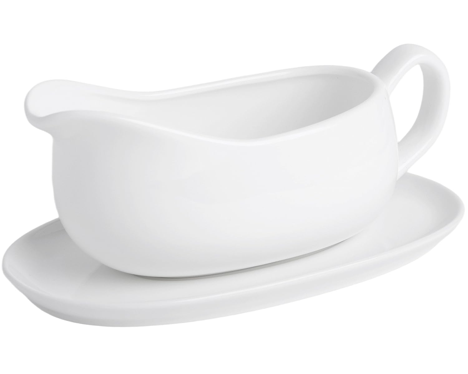 Kook Gravy Boat & Saucer, Ceramic Serving Dish, Dispenser with Tray for Sauces, Dressings and Creamer, Large Handle, Microwave and Dishwasher Safe, White 23.8 oz (Gravy Boat with Spoon)