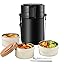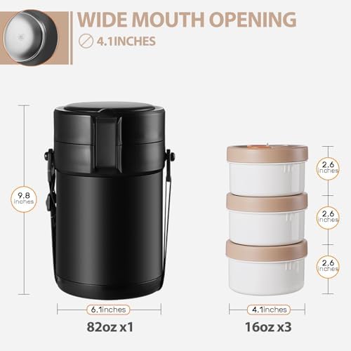 82oz Adults Thermo Food Jar For Hot Food 3 Tier Bento/Food Wide Mouth Insulated Stackable Food Containers Hot Cold lunch box for Work Office Outdoors Picnic (BLACK)