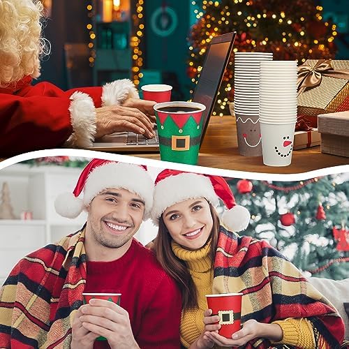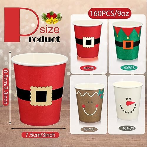 Mumufy 160 Pcs Disposable Christmas Coffee Cups 9 oz Santa Elk Elf Snowman Christmas Paper Cups Disposable Coffee Party Drinking for Hot Cocoa Tea Beverage Holiday Xmas Party Supplies