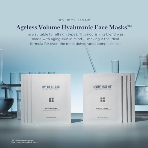 Beverly Hills MD Ageless Volume Hyaluronic Face Mask- Reduce Appearance of Wrinkles, Anti Aging Formula for Plump, Moisturized Skin- 8 Pack- Hydrating & Firming Gentle Sheet Mask