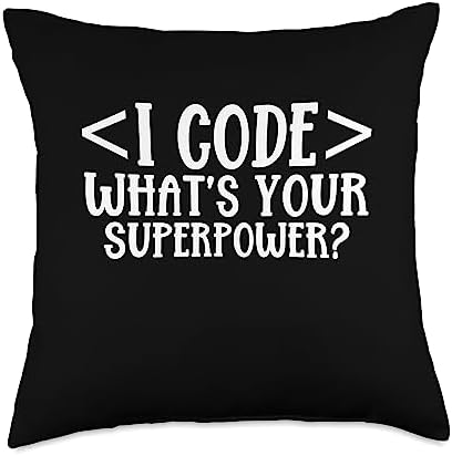 Programmer Quote For Coding Enthusiasts I Code-Whats Your Superpower Throw Pillow, 18x18, Multicolor