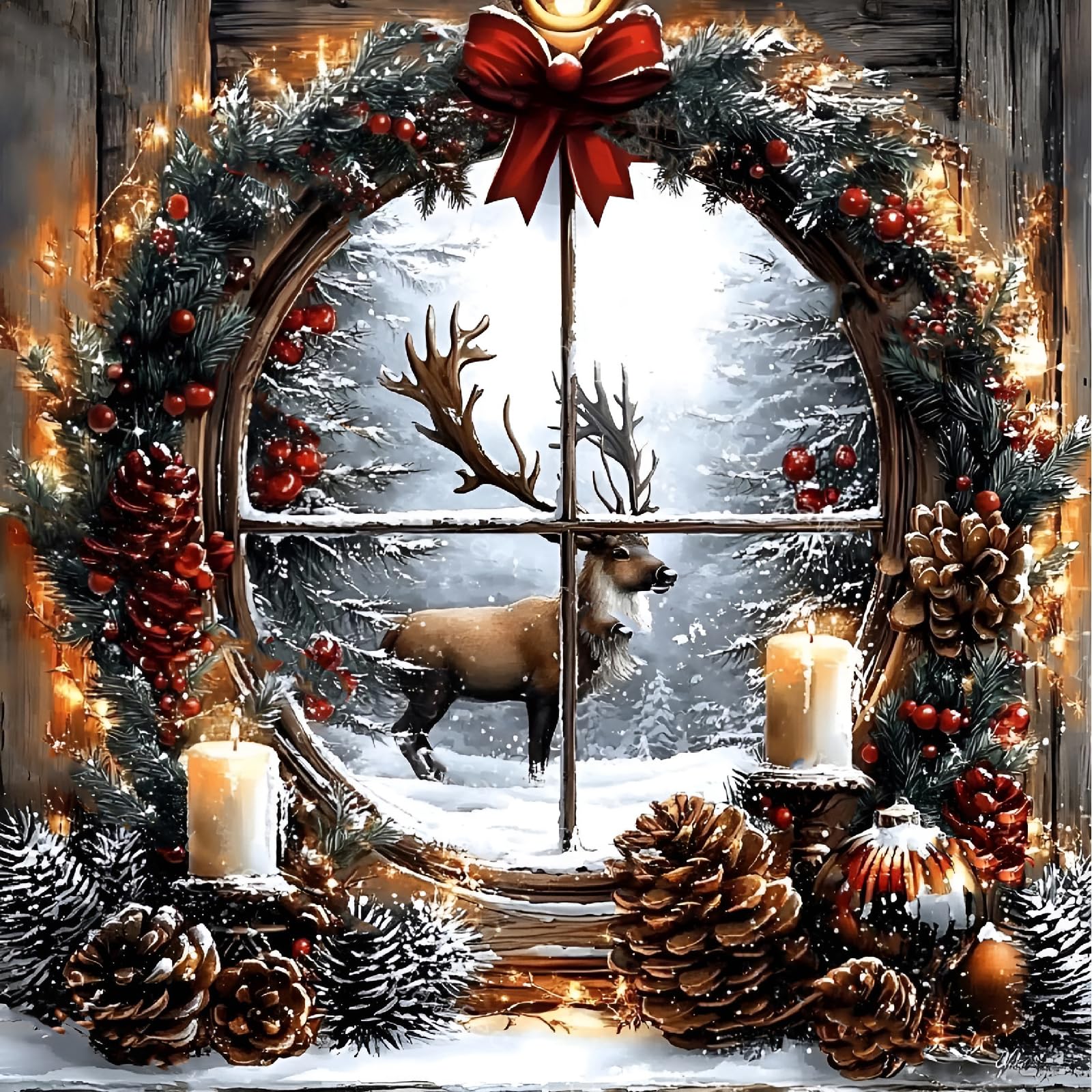 LWZAYS Christmas Diamond Art Kits for Adults, Christmas Diamond Painting Kits for Adults, 5D DIY Full Round Drill Paint with Diamonds Dots Gem Art Crafts Kits for Home Decor Gift 12x16inch