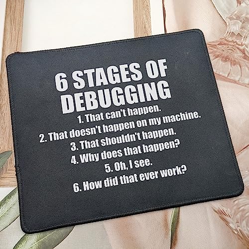 Stages of Debugging Mouse Pad for Programmers - Funny Coding Coder Programmer Software Engineer Developer Mouse Mat 9.5 x 7.8 Inch