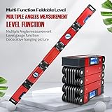 - This articulated folding angle measuring tool makes it easier to do a variety of leveling tasks. The folding design can be bent at will to fit the surface of the object being measured, and the highly accurate level bubble allows for clear calibration of the level position for easy observation and level determination. This folding level tool is light and small when folded; it can be easily put in a larger pocket or held comfortably in your hand for accurate measurement and easy usage. Therefore, it is an ideal present for woodworkers, repairmen, home daily maintenance enthusiasts, and DIY enthusiasts. Features: Five sections can be folded into a rectangular block for easy storage or straightened into a normal straightedge without scale, making it easy to draw straight lines and do other work. Four 45/90/180 degree high-precision horizontal bubbles, which are clear and easy to see, give you professional measurement data to meet most of your daily work. The level is made with quality material that is light, strong, and durable for accurate measurement, even for long-term usage, making it an ideal addition to your home maintenance tools. The built-in high-strength magnet provides strong magnetic properties and is firmly adsorbed to the redemption metal surface. The folding level can be used for decoration, picture frame installation, as well as the daily work of carpenters, maintenance personnel, and DIY enthusiasts, making it an ideal present for them. Attention: Due to differences in monitors and lighting effects, the actual color may be slightly different from the picture. Please allow a little deviation due to manual interference. Package Includes: A folding level