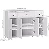 - LARGE KITCHEN BUFFET CABINET: 47.2"W x 15.3"D x 34.2"H. The buffet cabinet features a spacious tabletop, three storage drawers, and four cabinet doors to store some wine bottles, seasoning cans, cutlery, food, pots, and even coffee machines, etc. In addition, the 3 shelves are adjustable, so you can adjust the height according to your needs. Our buffet cabinet with storage will keep your kitchen and dining room clean and tidy