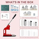 【ONE STEP, MULTI-SIZE CRAFTING】 Metal button maker machine set comes with everything you need! Includes metal body, 25mm, 32mm and 58mm button-model, 100 sets of 25mm button parts, 100 sets of 32mm button parts, 100 sets of 58mm button parts, as well as 2 round cutters and 1 cutting board. Allows you to easily make beautiful buttons of all sizes, unleashing creativity and individuality! 【STURDY AND DURABLE, LONG-LASTING ACCOMPANIMENT】Our Button Maker Machine is built with high-quality materials to ensure that it is sturdy and durable. It can withstand long hours of high-frequency use and provide you with long-lasting button making results. Whether you are a personal user or a commercial user, it is your reliable maker partner that will grow with you for a long time. 【EFFICIENT AND CONVENIENT, UNLIMITED POSSIBILITIES】 With our button pin maker machine, creating the perfect buttons and badges is quick and easy. Whether you are a home DIYer, a business promoter, or a club organizer, it helps you efficiently create buttons and badges for all occasions and unleash your creativity. UNLEASH YOUR CREATIVITY】 Whether you're a DIY enthusiast, an artist, or an event organizer, our button maker unleashes endless possibilities. Let your imagination soar and design customized buttons for parties, fundraisers, events, or just as wearable art. 【EASY BUTTON MAKING EXPERIENCE】 Experience the fun of making buttons with our user-friendly button maker. Its intuitive design and easy-to-follow instructions make it suitable for both beginners and experts. Get started quickly and see your ideas come to life in just a few simple steps.