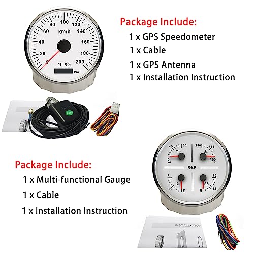 - Gauge Set-GPS speedometer indicating range: 0-200km/h, Fuel Level Gauge indicating Range: E-1/2-F, Water Temperature Gauge indicating Range: 100-250℉, Oil Pressure Gauge indicating Range: 0-80PSI, Voltmeter indicating Range: 8-16V.