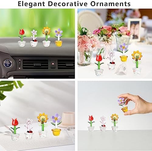 LONGWIN 4pcs Cute Mini Crystal Flower Figurines Collectible Hand Blown Glass Spring Bouquet Lucky Home Decor Ornaments Gift Idea for Mothers Day, Birthday, Christmas Day