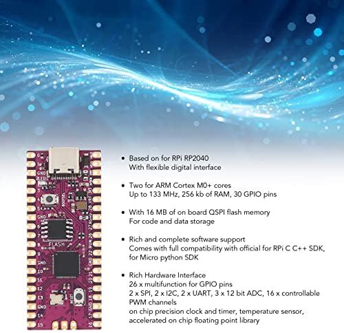- MULTIPLE SOFTWARE SUPPORT: For Pico has rich and complete software support, it comes with full compatibility with the official for RasPi C/C++ SDK, Micro python SDK. 16MB of on board QSPI flash memory for code and data storage. Maximum operating current is up to 500 mA.