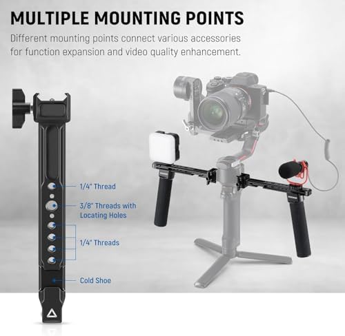 - 【Multiple Mounting Points】 Cold shoes, multiple 1/4" threads and a 3/8" thread with locating holes can connect various accessories, including magic arms, LED lights, and microphones, for expanded functions and enhanced video quality