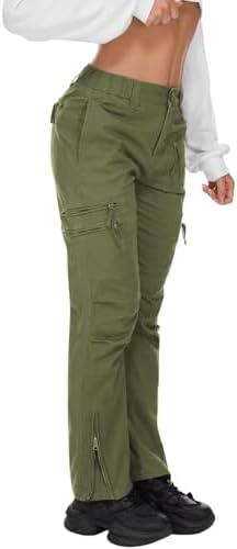 KOCTHOMY Cargo Hiking Pants for Women Tactical Baggy Pants Women's Casual Y2K with 6 Zipper Pockets No Belt W9922 ArmyGreen 8