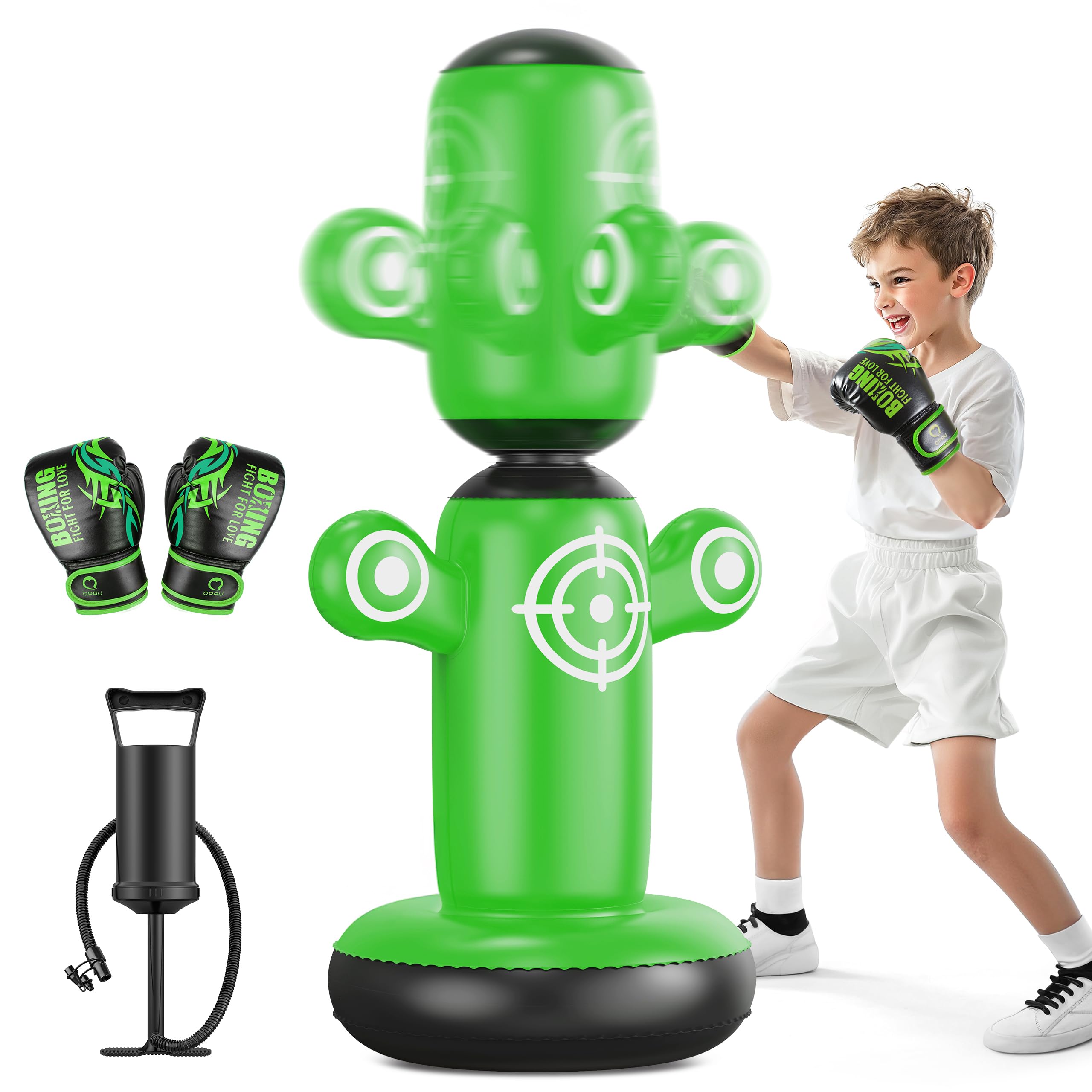 - FASTER REBOUND: The QPAU punching bag for kids offers a fun boxing experience, making it a good gift for boys and girls. The three independent air chambers ensure that no matter how hard you punch or kick the bag, it will immediately rebound.