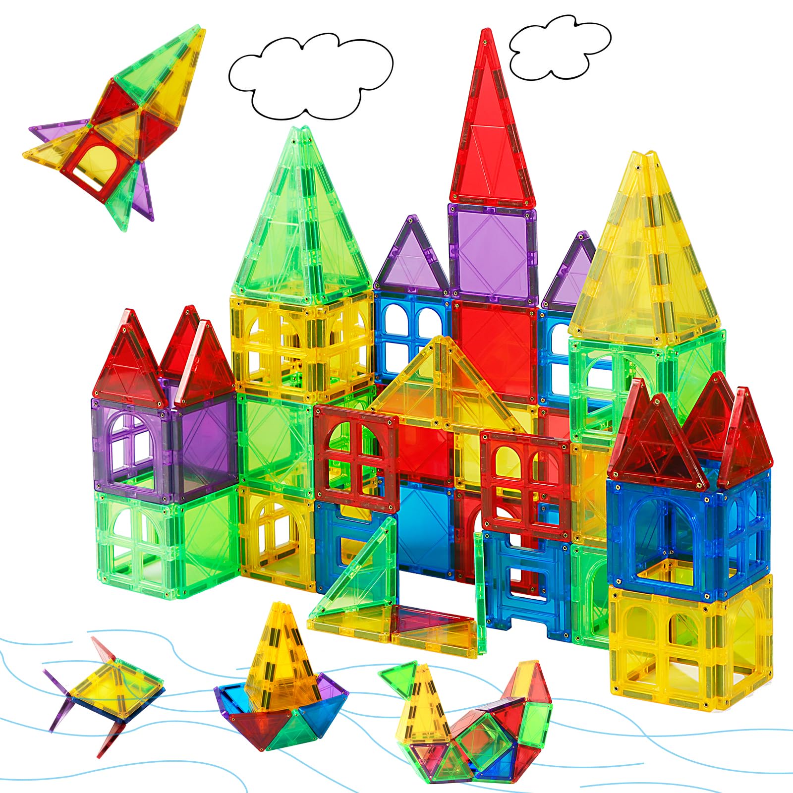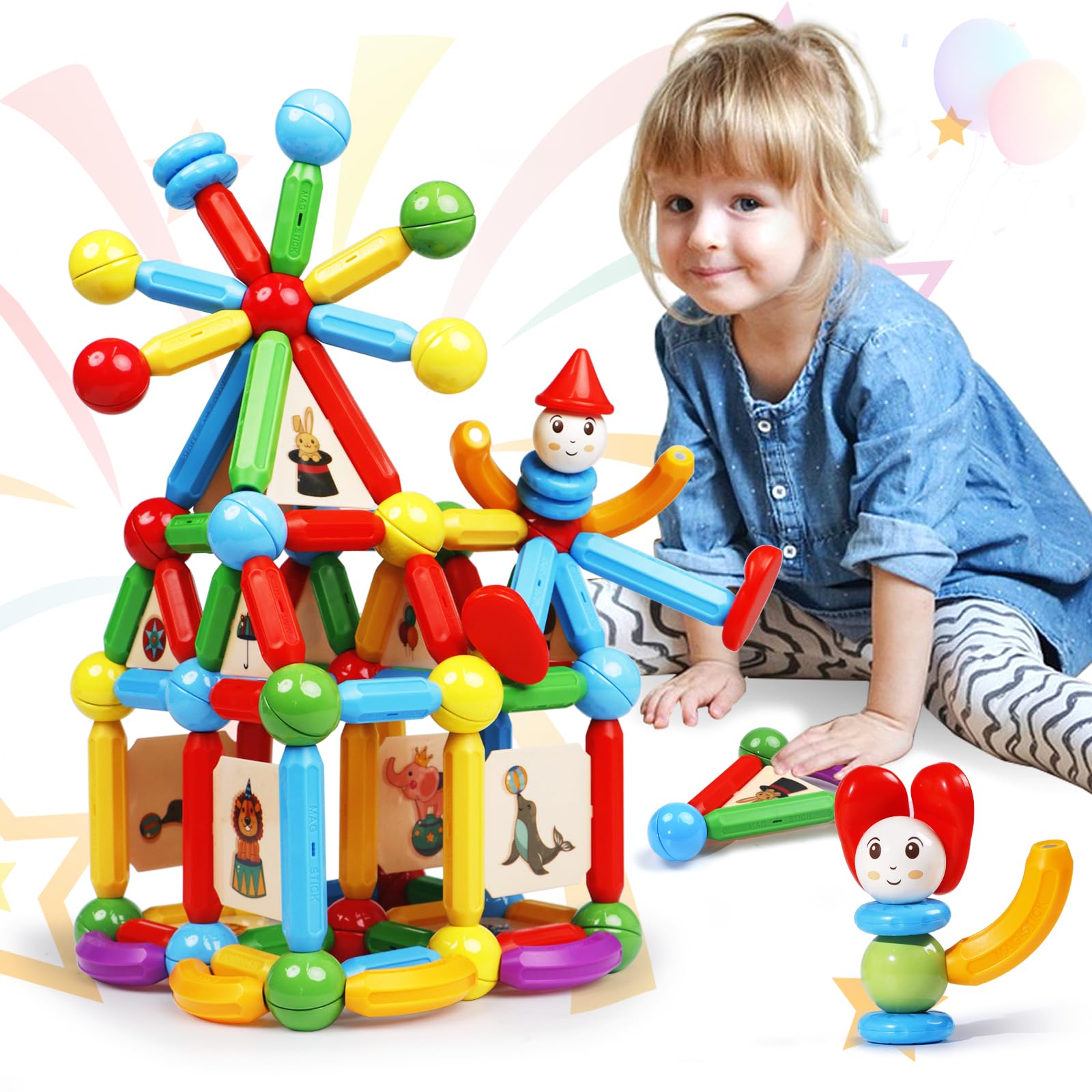 - 【STEM Learning & Educational Toys】This preschool stem magnetic building toys is classic montessori toys for toddlers and 3+ year old. A great fun toy for independent play and collaborate play with parents or other kids at home or party. Help kids improve intelligence,creative thinking,Imagination development, construction skills,geometric shape recognition and team building skills.