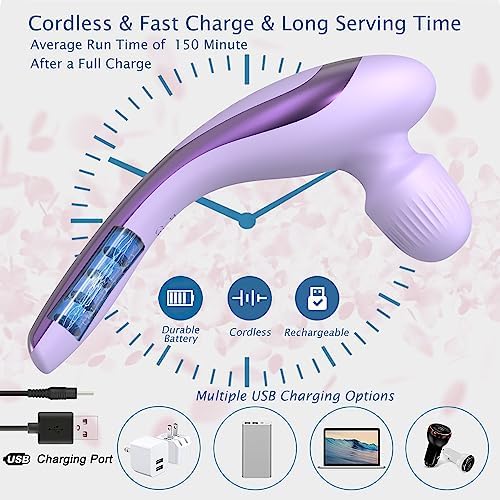 - 【Lightweight & Silent】 The mini handheld massager is very lighteweight and perfect for your travel caryy-on bag on-the-go. High-impact personal hand massager designed for relaxing back, neck and shoulder muscle, featuring a motor as quiet as an electric toothbrush. Also the portable massager provides muscle tension relief at home, work, and trip.