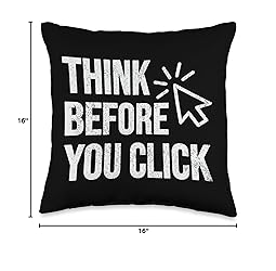 100% Polyester Think Before You Click - funny cyber security saying for computer geeks interested in hacking and network engineering This funny hacker design is perfect for computer nerds and geeks or computer science and cybersecurity students 100% spun-polyester fabric Double-sided print Filled with 100% polyester and sewn closed Individually cut and sewn by hand Spot clean/dry clean only