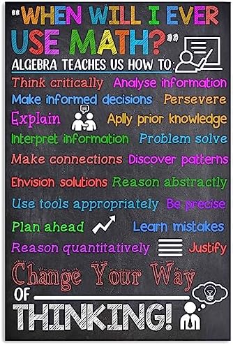 Math Classroom Poster When will I ever use math Algebra Poster Kids Motivational Quotes Classroom Teacher Wall Art Decor Signs School Decorations Classroom Rules Gift For Back To School