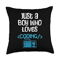 Tees for coding & computer science Just A Boy Who Loves Coding Computer Funny Throw Pillow, 18x18, Multicolor