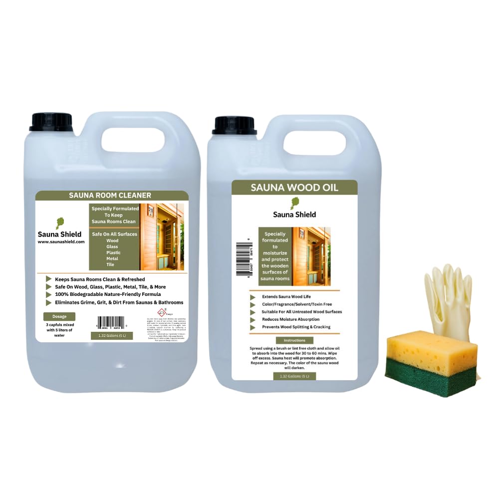 Protect, rejuvenate, and maintain your sauna with Sauna Shield’s premium Sauna Wood Oil, designed to nourish and extend the life of all wooden surfaces, including benches and panels. Our nature-friendly, toxin-free formula prevents splitting, cracking, and moisture damage, while enhancing the wood’s natural beauty. Suitable for both traditional and infrared saunas, a single 5L jug covers 600 + square feet, offering comprehensive protection and aesthetic enhancement. For best results, pair with Sauna Shield’s Sauna Cleaner before application (not required). Ensure the sauna wood oil only contacts the wooden surfaces of the sauna. For safety, avoid applying the oil to surfaces near or above the sauna stove in traditional saunas to prevent vaporization.