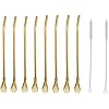 8Pcs Yerba Mate Straw, Golden Reusable Stainless Steel Drinking Bombilla Spoon Straws with Straw Cleaning Brush
