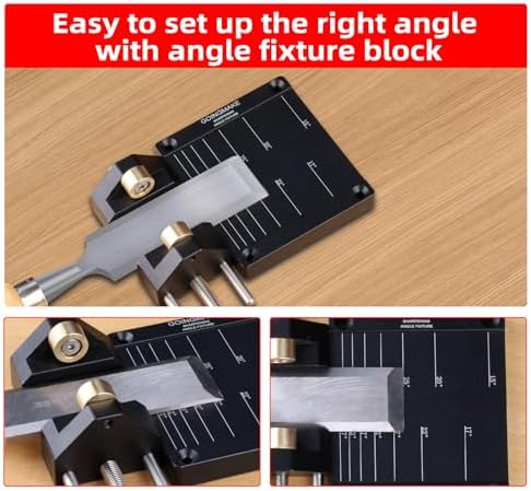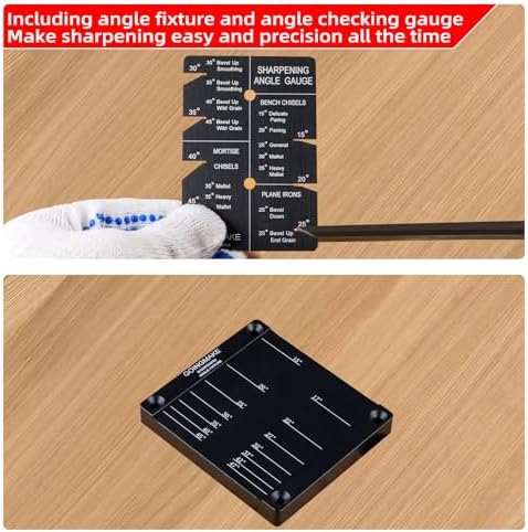 - 【SHARPENING ANGLE FIXTURE】Chisel sharpener can help you get standard chisels and planes angles with sharpening anlge fixture at 15/20/25/30/35/40/45° and 17/22/27/32/37/42°. If you don't know your chisels or planes angle, you can use the angle gauge to check it easily.