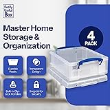 Really Useful Box 4 Pack Storage Bins, Clear Plastic Stackable Organizing Totes, 8.1 Liter